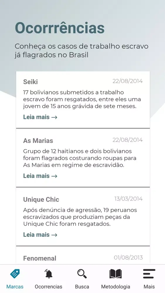 A proposta é trazer ao público, de forma ágil e acessível, as medidas que as marcas – as principais varejistas de roupas do país e empresas que já foram flagradas pelos fiscais do Ministério do Trabalho e Emprego (MTE) – vêm tomando para evitar que as peças vendidas em suas lojas sejam produzidas por mão de obra escrava.