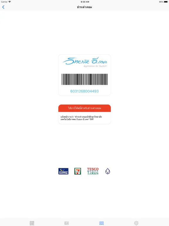 • ระบบการชำระค่าธรรมเนียมการศึกษาด้วย Bar code
