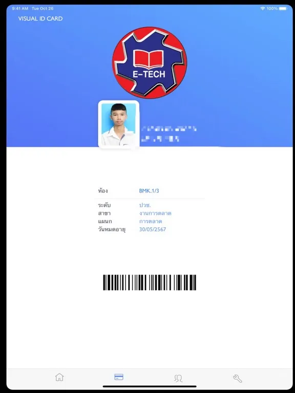 • ระบบ Visual ID Card บัตรแสดงข้อมูลเบื้องต้นนักศึกษา