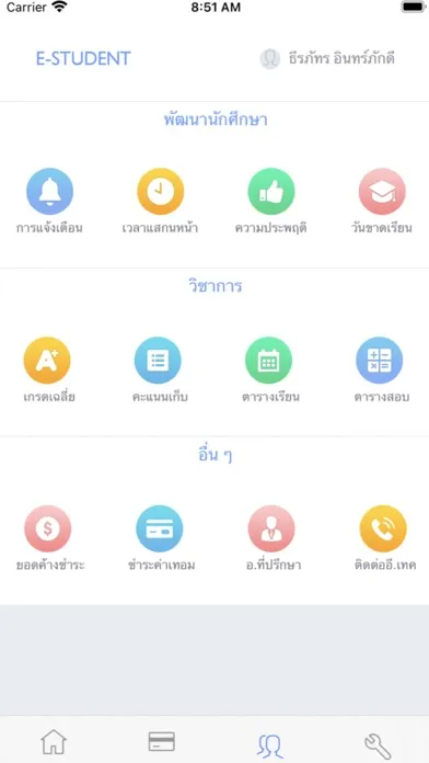 ระบบ e-Student SIS สำหรับนักศึกษา ประกอบด้วย