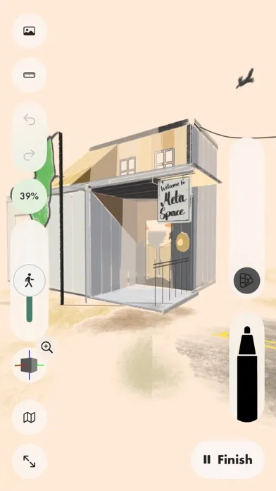Metaspace uses touch camera controls, meaning that you use familiar multi-touch gestures to move around in the space, whilst using very little battery power. You may also turn on AR mode for something more exciting, where Metaspace will detect the world around you with the back camera, and you will find yourself walking inside of your drawing.