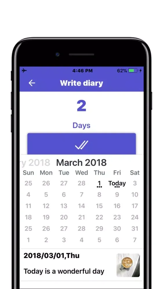 Each habit is displayed on the calendar, you can view details and modifications.