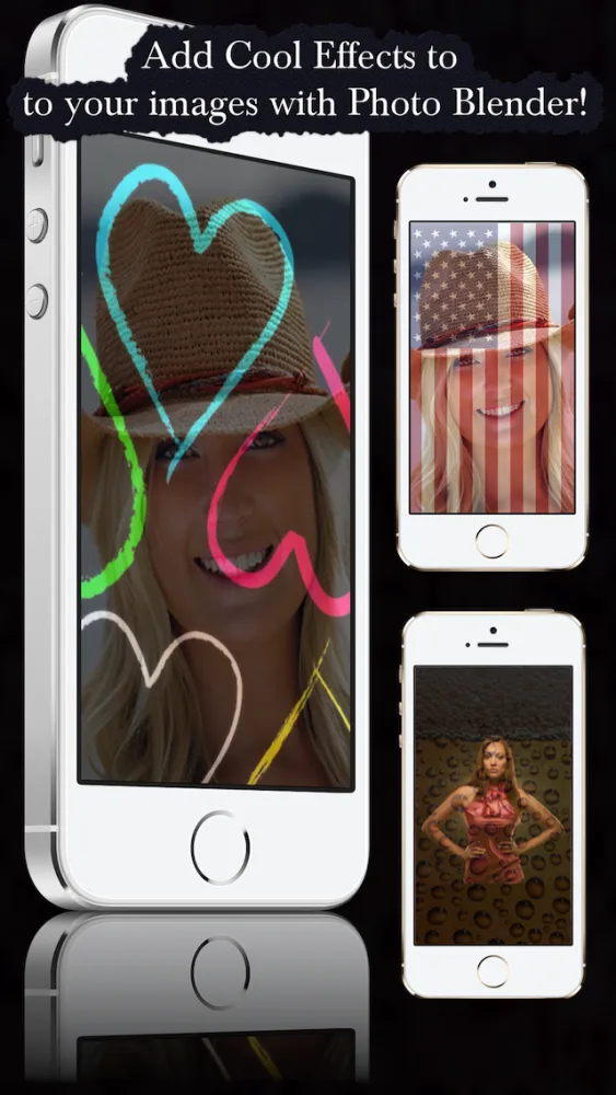 Create Amazing Images easy – transform your photos with cool textures, glossy overlays, photo optical illusions & beautiful backgrounds! Add unique effects to your Pictures! Photo Blender is simplicity unlike any other app, quickly add texture to your images, save and share your new creations.