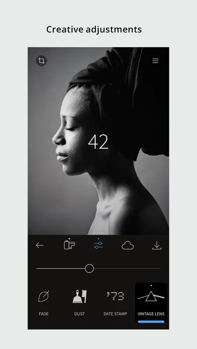 Use RNI image adjustment tools to make sure your images perfectly meet your creative vision. You can crop and rotate, alter the brightness, contrast, and colour, enhance shadows and highlights, add vignette and real film grain, and much more.