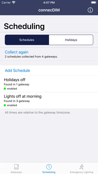 - This app works only in combination with the Tridonic connecDIM gateway.