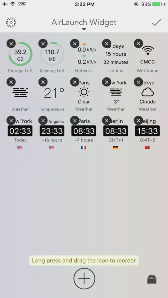 - You can click the edit button on the upper-right corner, then long-press and drag the icon to reorder.