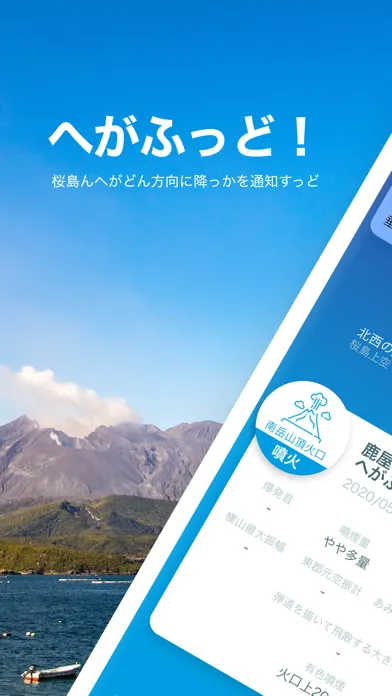 こんアプリは、桜島ん噴火や爆発によってどん方向にへが降っかを通知すっアプリじゃっど。