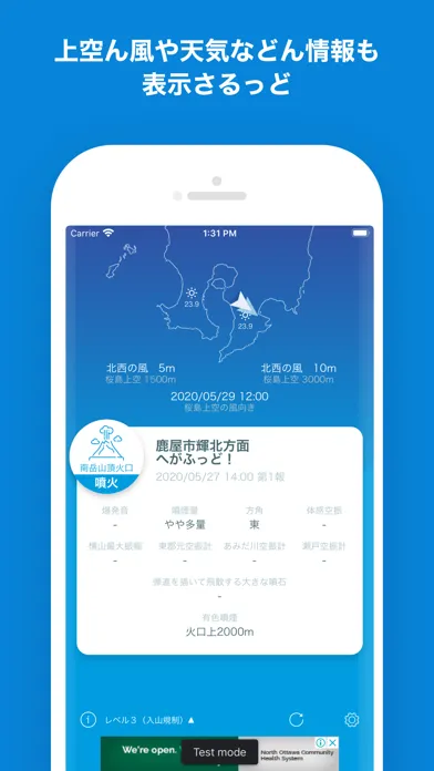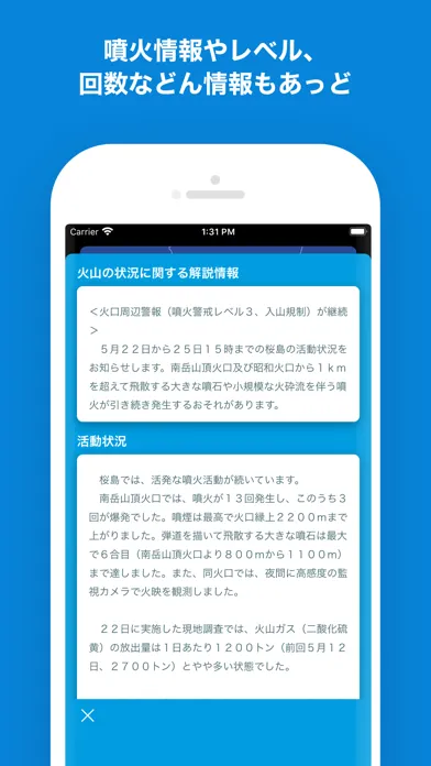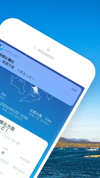 このアプリは、桜島の噴火や爆発によってどの方向に灰が降るのかを通知するアプリです。