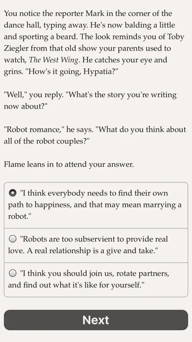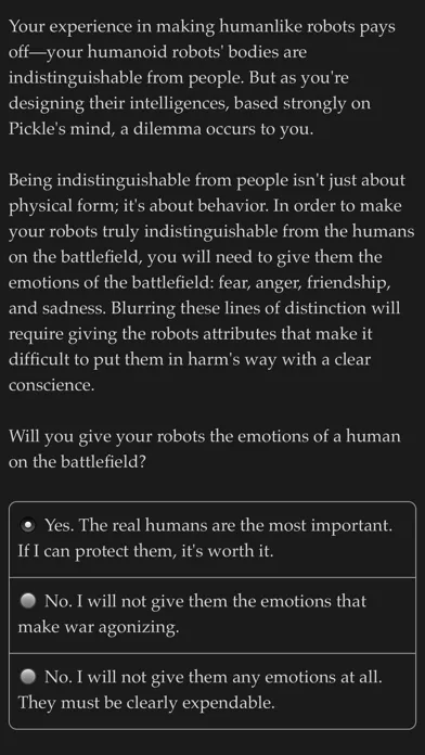 "Choice of Robots" is an epic 300,000-word interactive sci-fi novel by Kevin Gold, where your choices control the story. It's entirely text-based—without graphics or sound effects—and fueled by the vast, unstoppable power of your imagination.