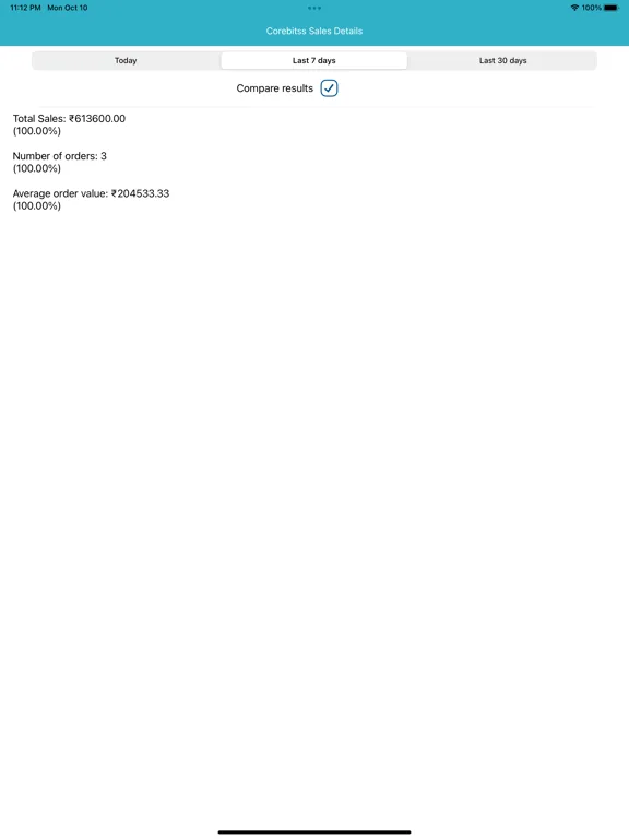 - Check instant details on different three metrics: Sales, number of orders and average order value.