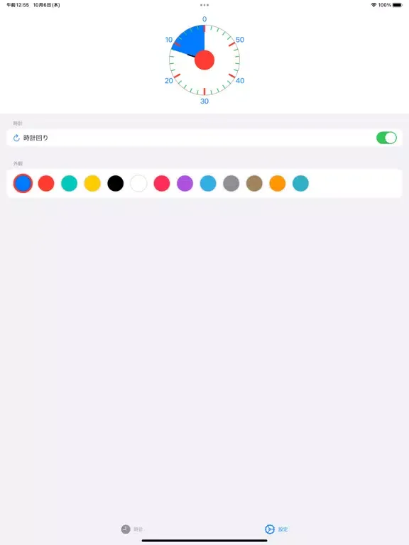 色の変更、時間の進む向きを変更可能