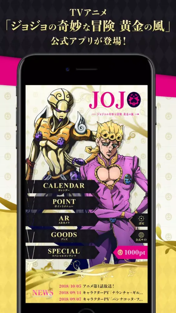 TVアニメ「ジョジョの奇妙な冒険 黄金の風」関連の最新ニュースや、貯めて使えるアプリ内ポイント、アプリ限定スペシャルコンテンツ配信やARジョジョステッカーなどをお楽しみいただけます!