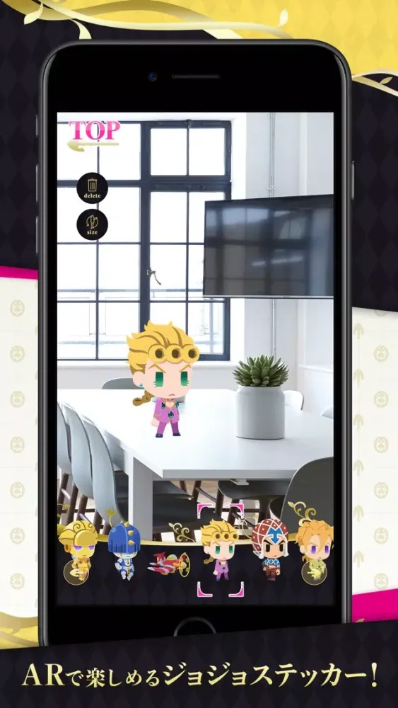 AR機能で自分の部屋や現実のいろいろな場所をジョジョステッカーで飾れます。