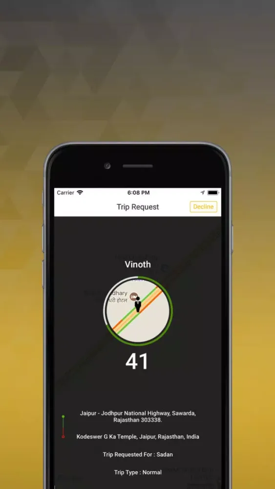 D Cabs driver app is all set to respond its passengers over an tap. Each driver have their own login credentials . Upon activating GPS over driver app , passenger request can be received, accepted or rejected. The driver can keep track upon ongoing trip. He can manage his profile information. The details of the trip such as pick up and drop location, time, taxi type etc., are received from the passenger. The approximate fare is automatically calculated. The trip payments can be received via card or cash from passenger. The driver app allows to saves history of completed trips for future reference in statistics tab.