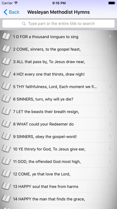 Methodist Hymn Lyrics app is designed to enhance your worship service, and your devotion to the Lord by making available the Public domain version of the Wesleyan Methodist hymn lyrics, and other Methodist hymn books.
