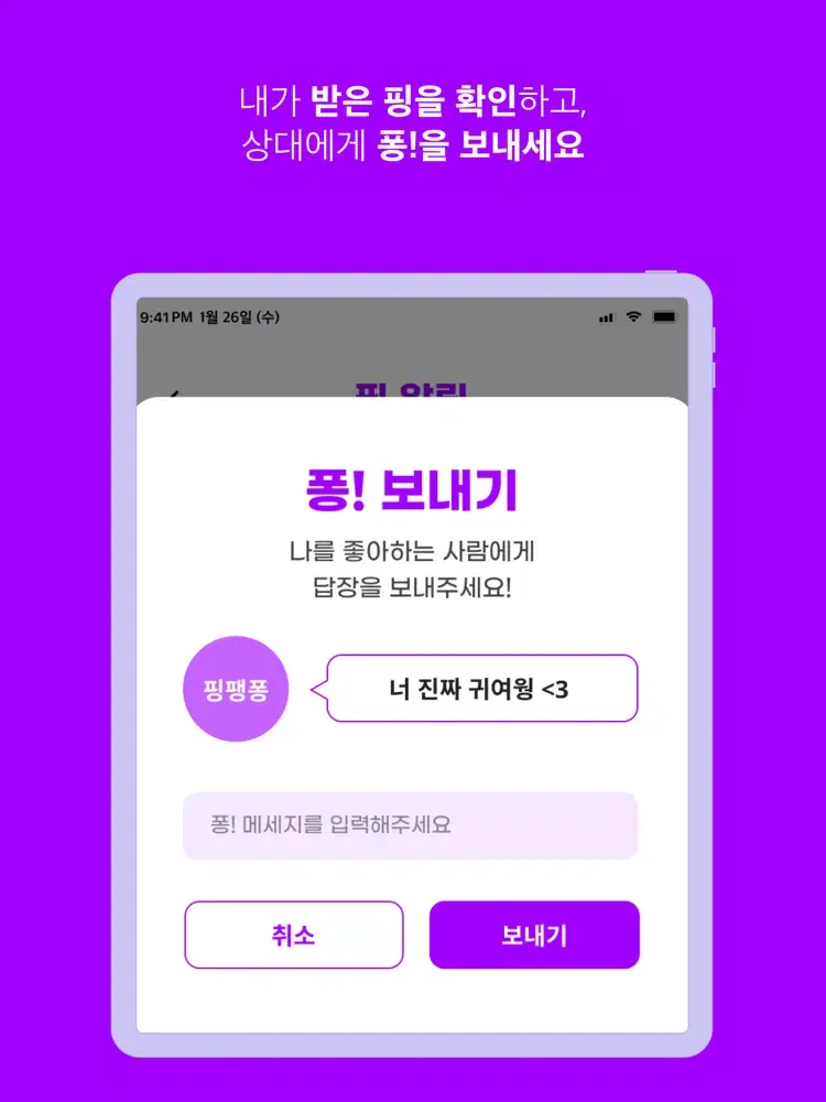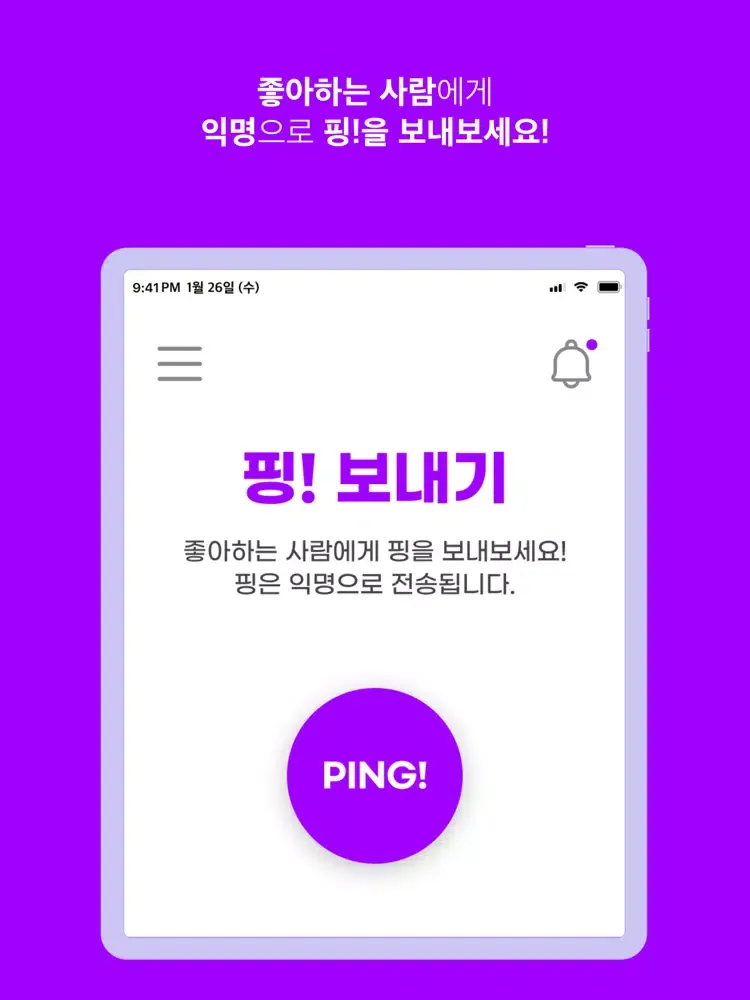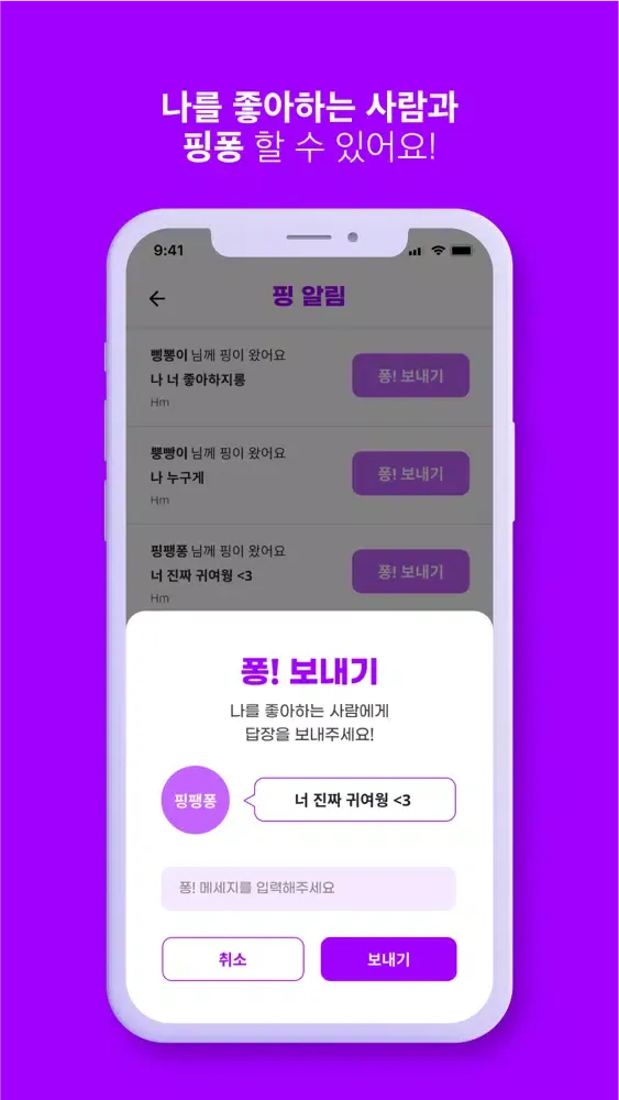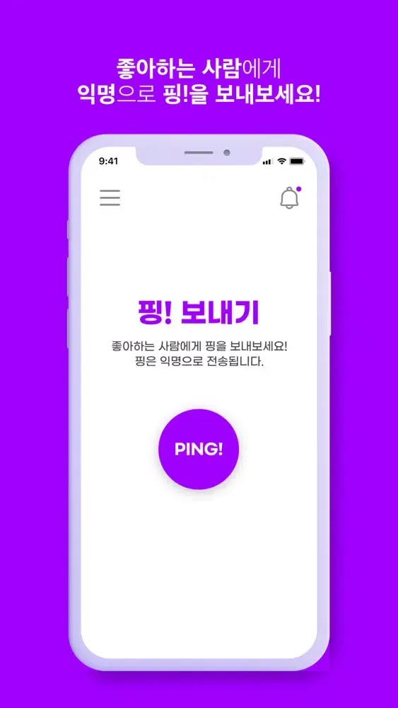 1. 좋아하는 사람에게 익명으로 핑!(메시지)를 보내보세요!