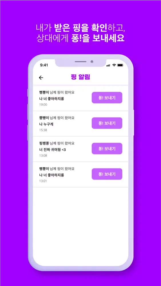 - 핑을 보내준 친구에게 답장으로 퐁!을 보내주세요.