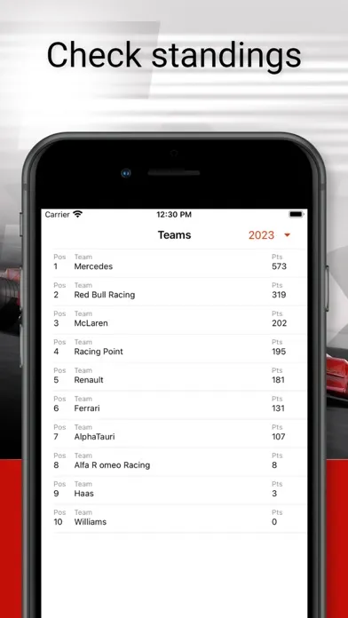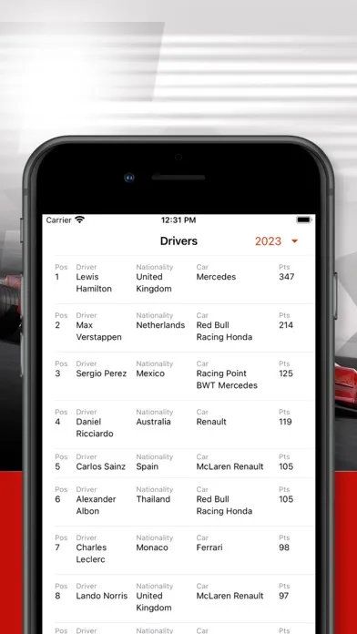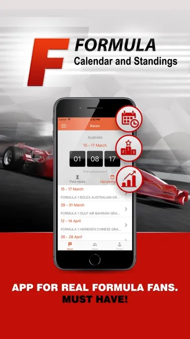 This app is unofficial and is not associated in any way with the Formula One group of companies. F1, FORMULA ONE, FORMULA 1, FIA FORMULA ONE WORLD CHAMPIONSHIP, GRAND PRIX, FORMULA ONE PADDOCK CLUB, PADDOCK CLUB and related marks are trade marks of Formula One Licensing B.V.