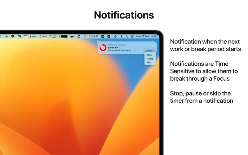 • Menu bar app with a simple, distraction-free and intuitive interface.