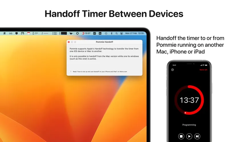• Handoff the timer to or from Pommie running on another iOS or Mac device.