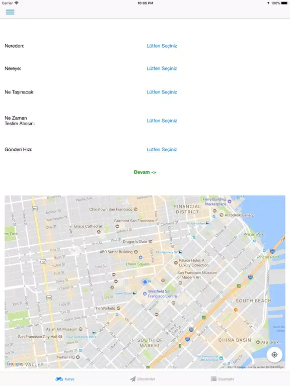 Konumunuza göre hızlıca kuryeci çağırabilirsiniz