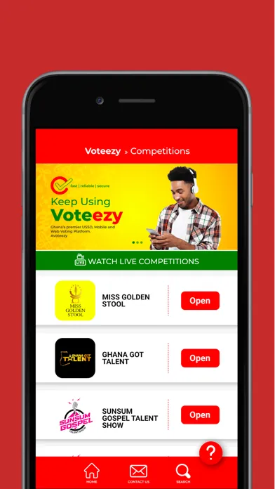 Voteezy is a multiplatform voting system that allows users to vote on USSD, the voteezy.com website, and mobile apps.