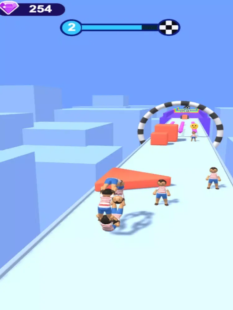 Only when your team is sufficiently long can you climb across the blocking walls one after another.