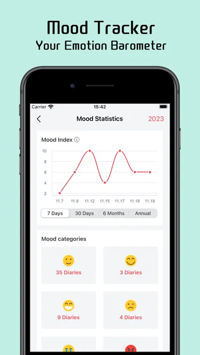 【Mood Statistics】Detailed statistics of mood fluctuations and can view Diary entries based on mood.