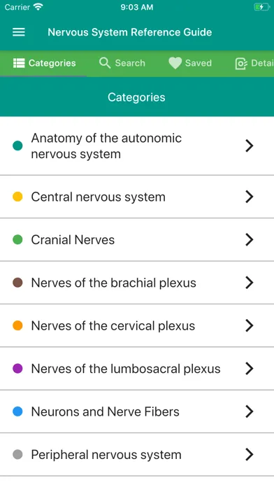 This app allows you to search for and save your selected Nervous System topic for quicker access helping you to study the various material in a more intuitive manner.