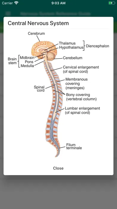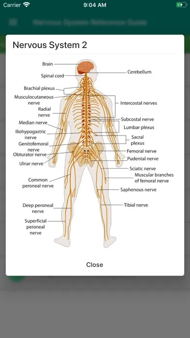 This apps covers information about the Human Nervous system split into 10 top level sections: Central Nervous System, Peripheral Nervous System, Neurons and Nerve Fibers, Termination, Cranial Nerves, Spinal Nerves, Nerves of the Brachial Plexus, Cervical Plexus, Lumbrosacral Plexus and Anatomy of the Autonomic Nervous System