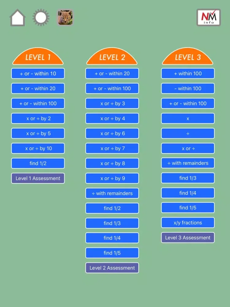 The App is carefully designed to asses and build skills for the beginner right up to the most advanced student. Because the Numeracy Map is so visual, we have created a view mode where you simply watch answers being arrived at on the map. Then we have practice mode where the user works alongside the map.