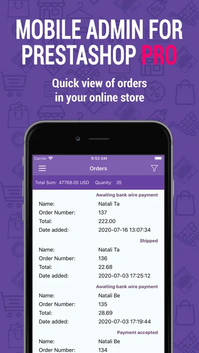For our application to work, you need to additionally install the module on your online store. You can download the module at the link https://addons.prestashop.com/en/mobile/44587-mobile-admin.html