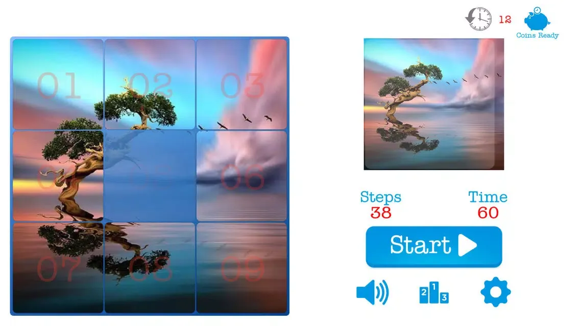 Sliding Puzzle is classic sliding block puzzle toy. Slide the tiles to re-arrange into the correct order. Simple and fun.