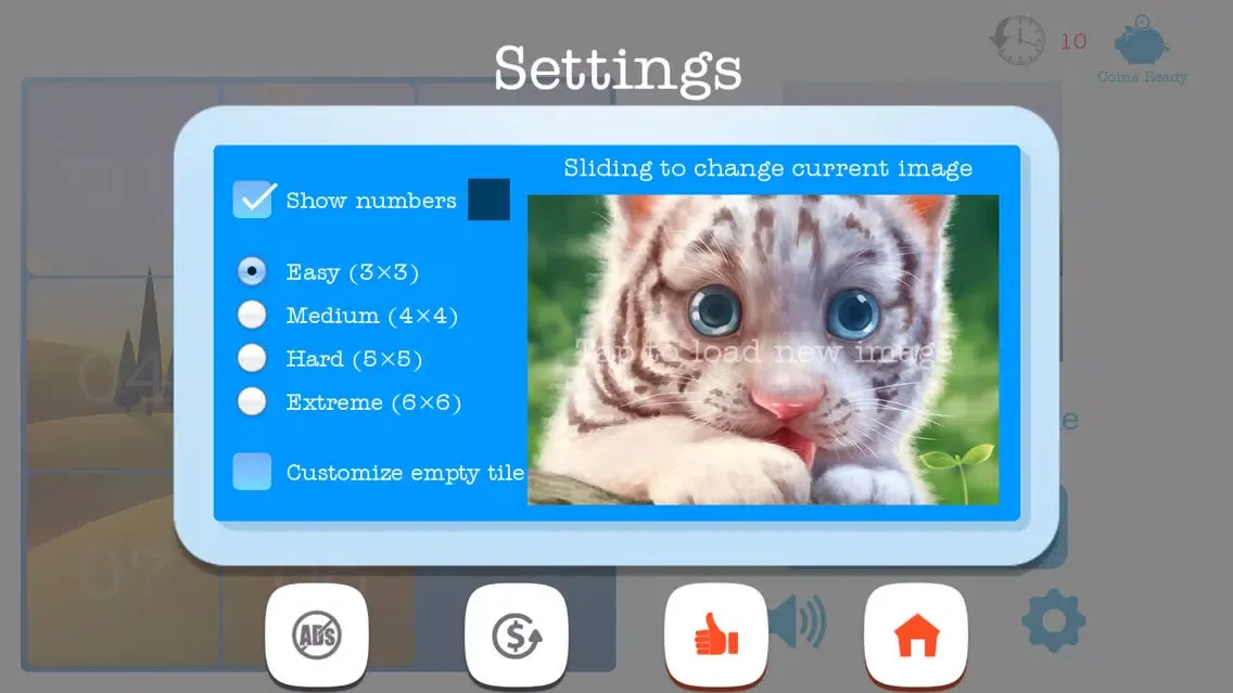 - Numbered tiles, abstract images, or your own custom image from your photo library