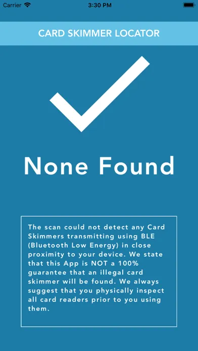 This App should only be used as an additional means of protection and should NOT be the primary means to locating Card Skimmers.