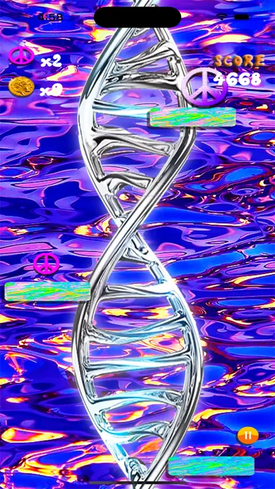 There are 3 levels; Easy, Medium & Hard. Each new game starts with 3 lives. Hop from one rainbow chromosome to the next avoiding the red. Red = death. Earn more "lives" by landing on the purple peace signs. Collect gold coins as you go. Develop your flow to blow up your score. The higher your score, the faster the game becomes. Have Fun!