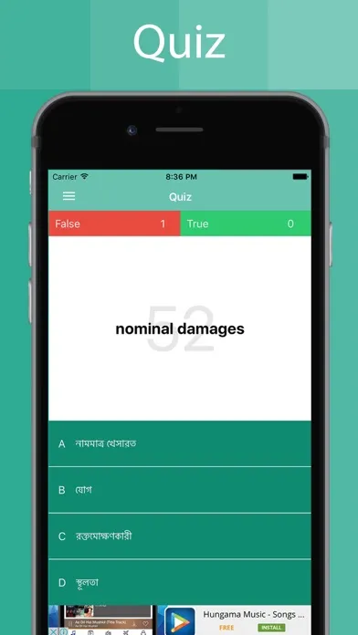 This Bengali Dictionary Contains Quiz too. you can test you Bengali skills using this multiple choice quiz and you can improve your Bengali.