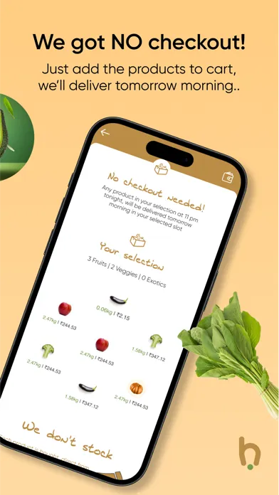 Freshest, handpicked produce, direct from farmers! And to ensure this, we have done one simple change in our supply chain - No warehouses and No dark stores. The produce comes directly from farmers to you - You order, we buy for you and deliver to you.