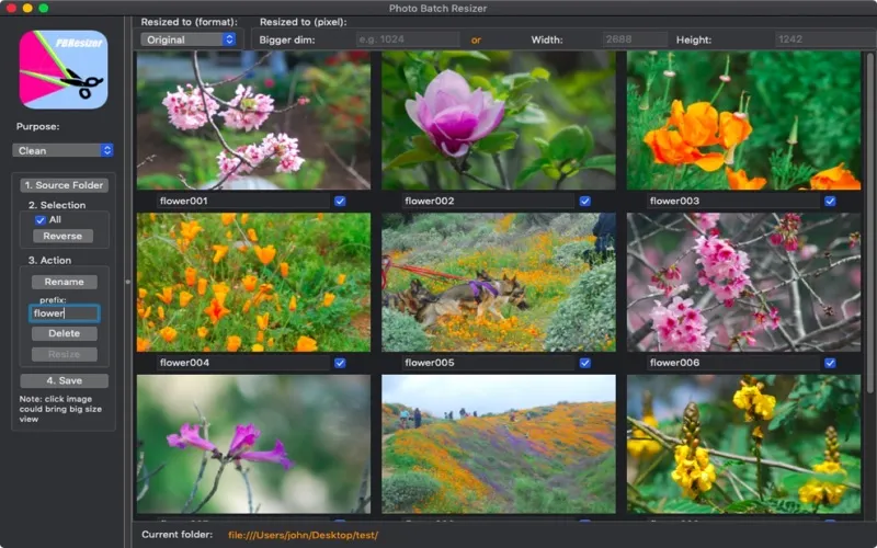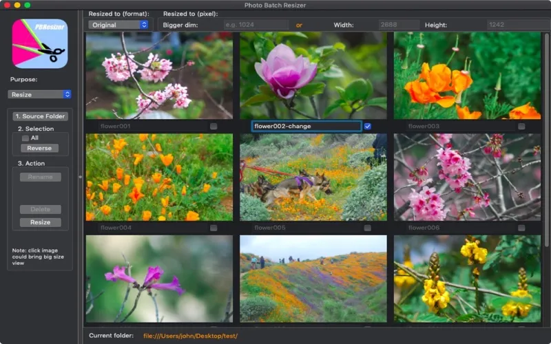 - Resize selected images to any size in one shot