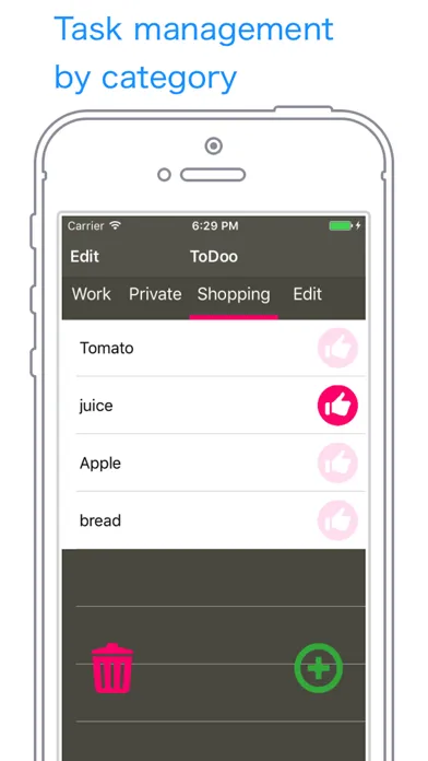 ToDoo is a category list type ToDo application that can manage tasks for each usage scene such as work and shopping.