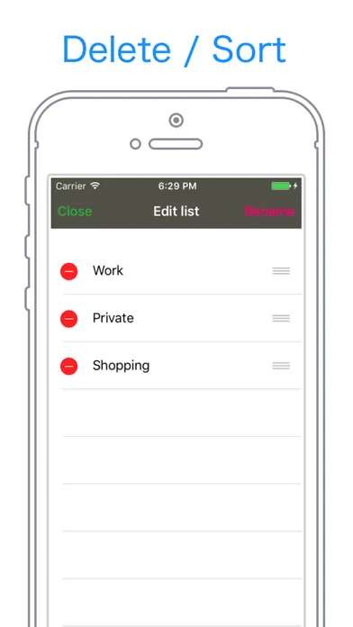 - You can delete and rearrange the currently displayed task with the "Edit" button tap on the upper left.