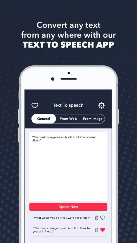 • Listen to your content with any of Text to Audio HD voices or 50+ supported languages, and find the perfect reading speed that works for you. Read along with Text to Speech interactive reading interface, or simply lay back and listen!