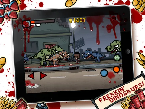kill dinos, earn cash, hide in houses, grab ammo, head to ammo country and buy new guns for the next level.