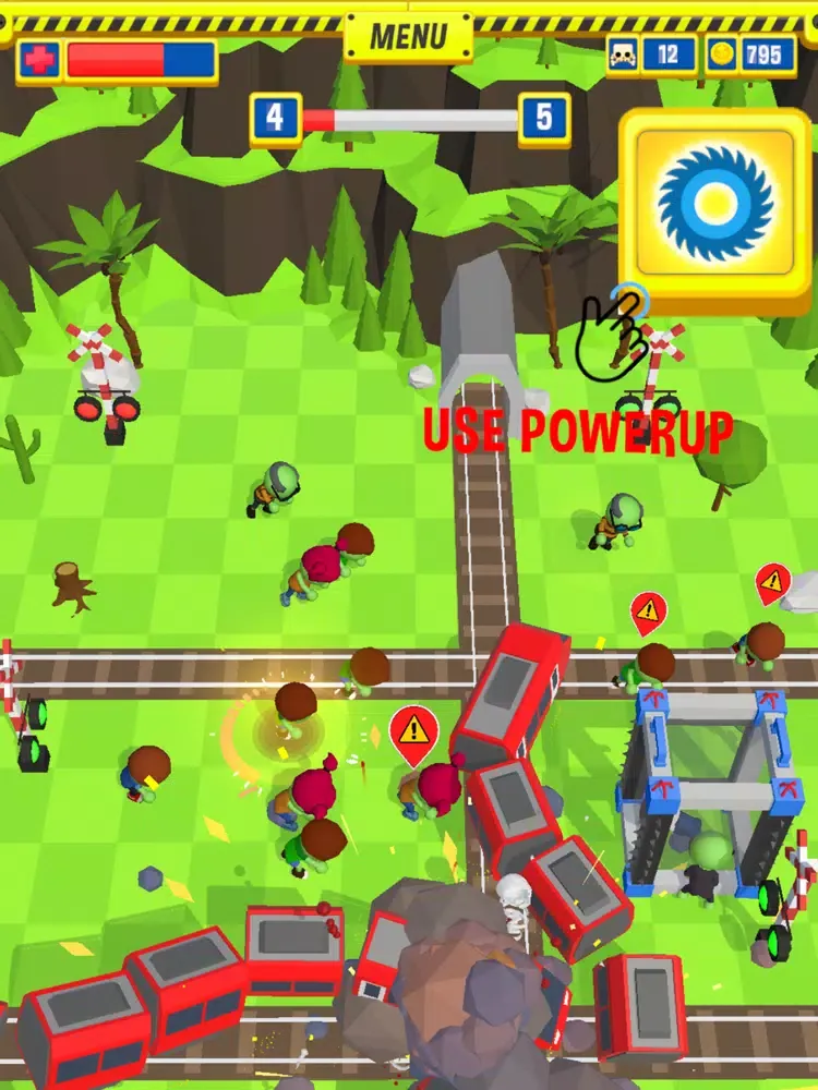 Tap on Tracks to Release Trains to Smash the Zombies Like Train Master and Save Human .
