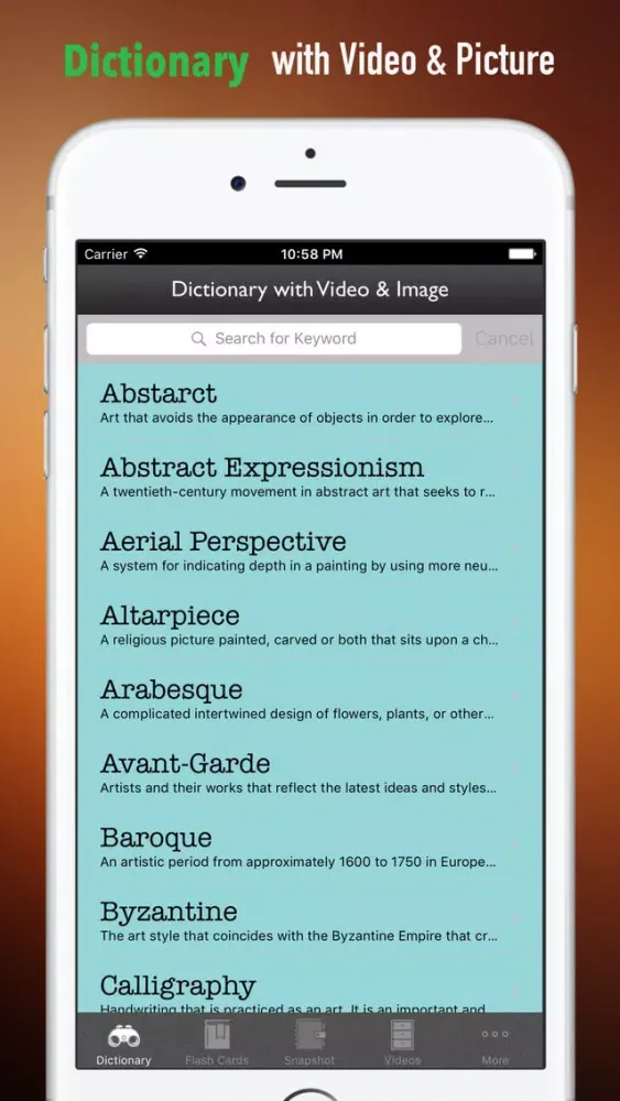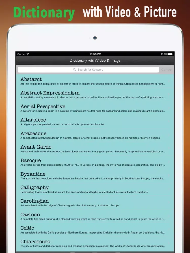 * We have collected All of the most common Art History Glossary and terminology. Wherever you feel puzzled by the names, the App is your powerful dictionary tool.