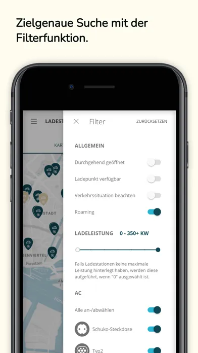 Mit Hilfe der Übersichtskarte finden Sie schnell eine passende Ladestation in Ihrer Nähe. Die Übersichtskarte zeigt Ihnen alle für Sie zugänglichen Ladepunkte an, die Sie ganz einfach per App freischalten können. Darüber hinaus sehen Sie die aktuelle Verfügbarkeit der einzelnen Ladestationen, erhalten Informationen zu möglichen Störungen und erhalten zusätzlich alle Informationen über die aktuell gültigen Nutzungsgebühren.