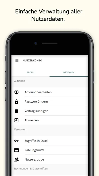 Ihre persönlichen Daten, Abrechnungsinformationen und alle Ladevorgänge können Sie direkt in der App in Ihr persönliches Nutzerkonto verwalten; die Abrechnung erfolgt bequem via Lastschriftverfahren oder Kreditkarte.
