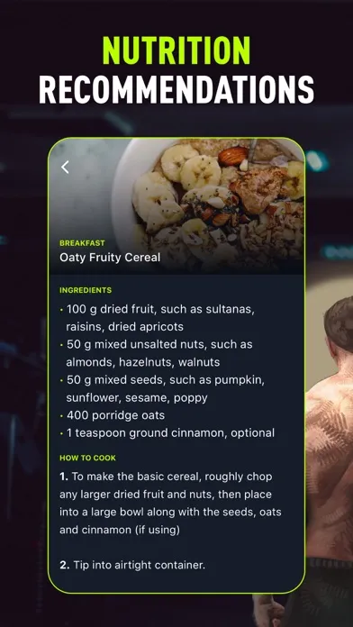 A healthy diet is the best companion to your fat burning or body building exercises. Depending on your goal, Muscle Master will plan your diet, provide you with special recipes and regulate your nutrition intake on a daily basis.