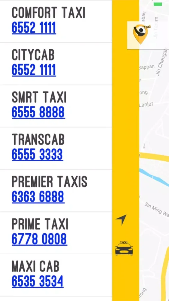Need a taxi but not sure where you are? Taxi SG has made it easier, providing you your current pick up location and a list of cab companies phone booking numbers. Booking numbers at your fingertips.