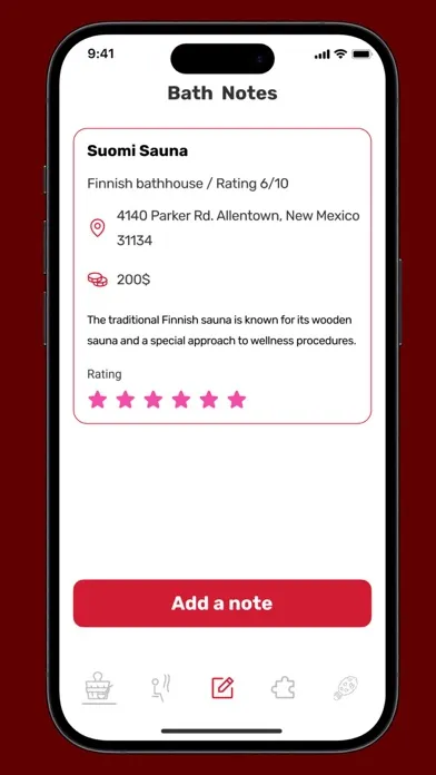 - Bath Notes: Record your impressions of bath visits, evaluate steam quality and atmosphere, and create your own personal bathhouse diary.